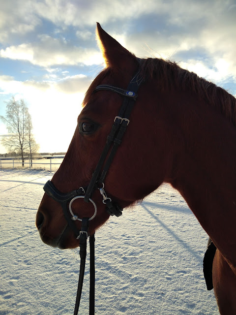 Niinpä tilasin meille uuden kuolaimen, jonka saapumista tosin odottelen edelleen. Siihen saakka ratsastelen ihan vanhanaikaisella ohuella liikkuvarenkaisella nivelkuolaimella, jolla Pena on yllätyksekseni ollut aika kiva. Meillä tosin meni suitsetkin uusiksi, mutta muutos on vielä niin tuore etten uskalla tämän enempää sitä hommaa hehkutella, palaan tähän myöhemmin.