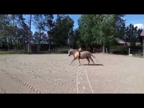Alla editoimattomia videoita Sulon ohjasajotreenistä. Ollaan molemmat ihan keltanokkia tuossa hommassa, mutta kerta kerralta paremmin. Laukkaosuuksissa huomaa miten Sulolta puuttuu voimaa - se rikkoo useamman kerran raville juuri niissä askeleissa joissa sen tulisi koota ja ponnistaa. Vasen kierros oli kauttaaltaan vaikeampi ko. kerralla.